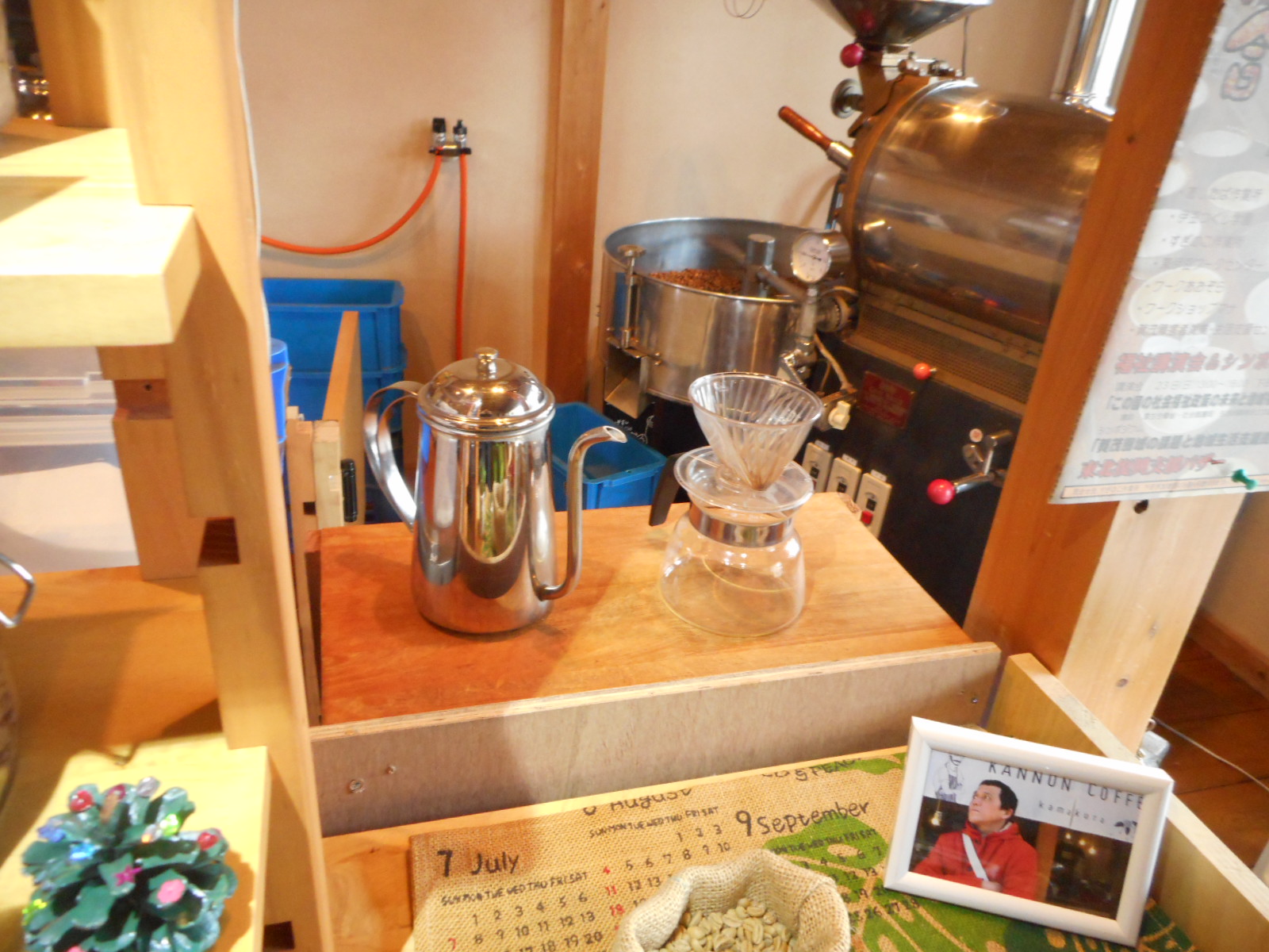 先日設置した売り場横のドリップコーナーの上に、メッセージボードを設置しました。
